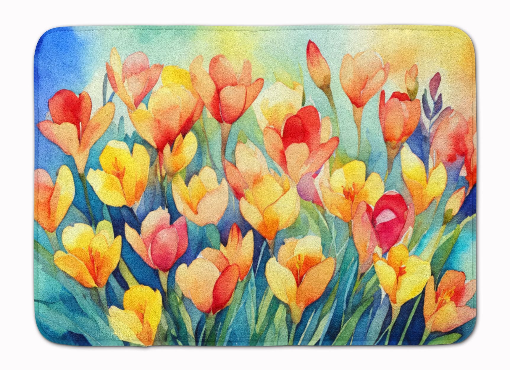 Freesias in Watercolor Memory Foam Kitchen Mat Machine Washable Anti-Fatigue Mat Cushion Comfort Bath Mat or Kitchen Rug