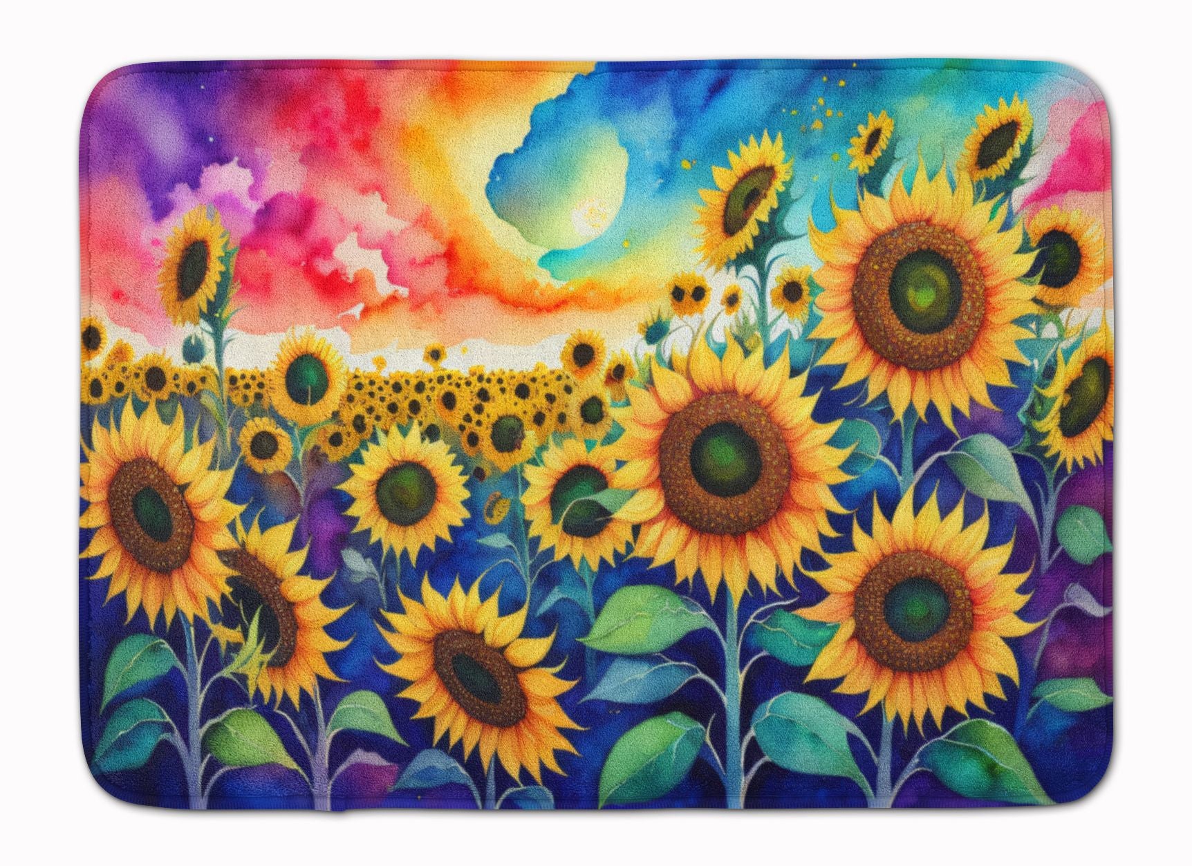 Sunflowers in Color Memory Foam Kitchen Mat Machine Washable Anti-Fatigue Mat Cushion Comfort Bath Mat or Kitchen Rug