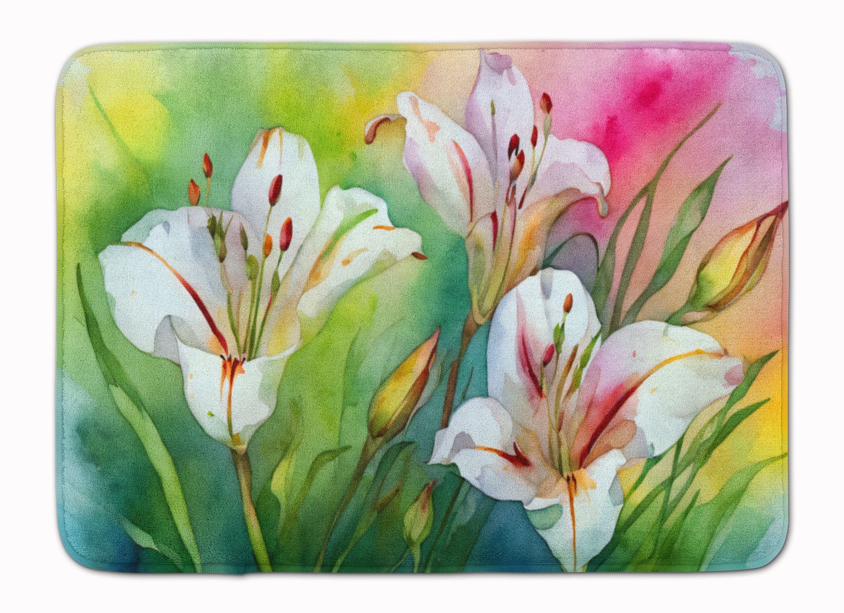 Utah Sego Lilies in Watercolor Memory Foam Kitchen Mat Machine Washable Anti-Fatigue Mat Cushion Comfort Bath Mat or Kitchen Rug