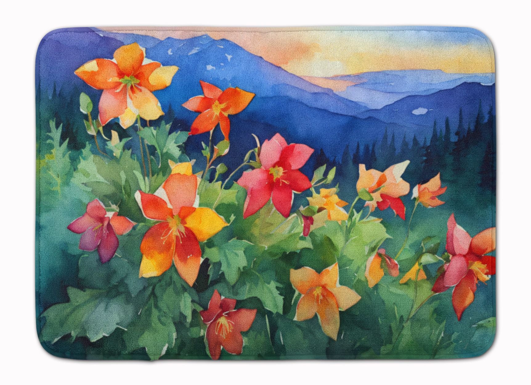 Colorado Rocky Mountain Columbine in Watercolor Memory Foam Kitchen Mat Machine Washable Anti-Fatigue Mat Cushion Comfort Bath Mat or Kitchen Rug