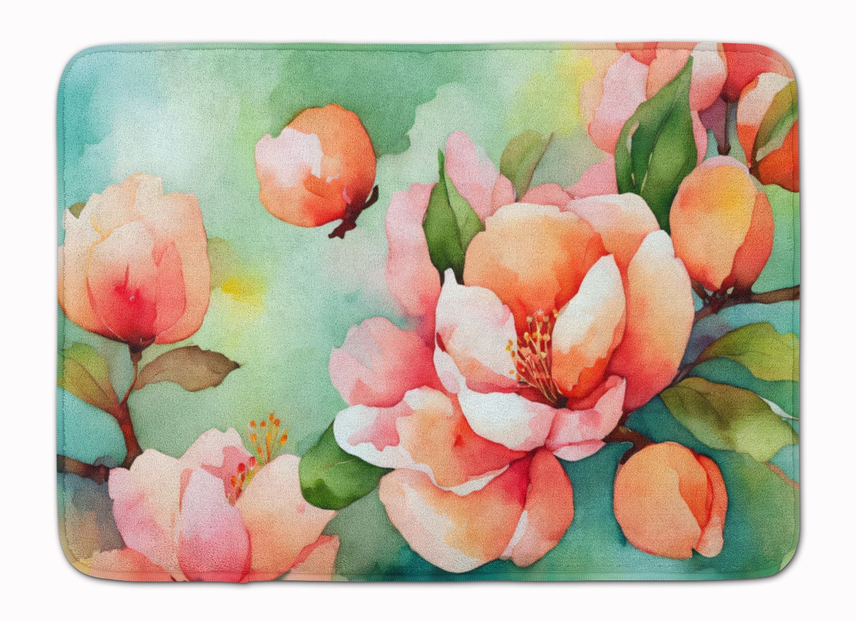 Delaware Peach Blossom in Watercolor Memory Foam Kitchen Mat Machine Washable Anti-Fatigue Mat Cushion Comfort Bath Mat or Kitchen Rug